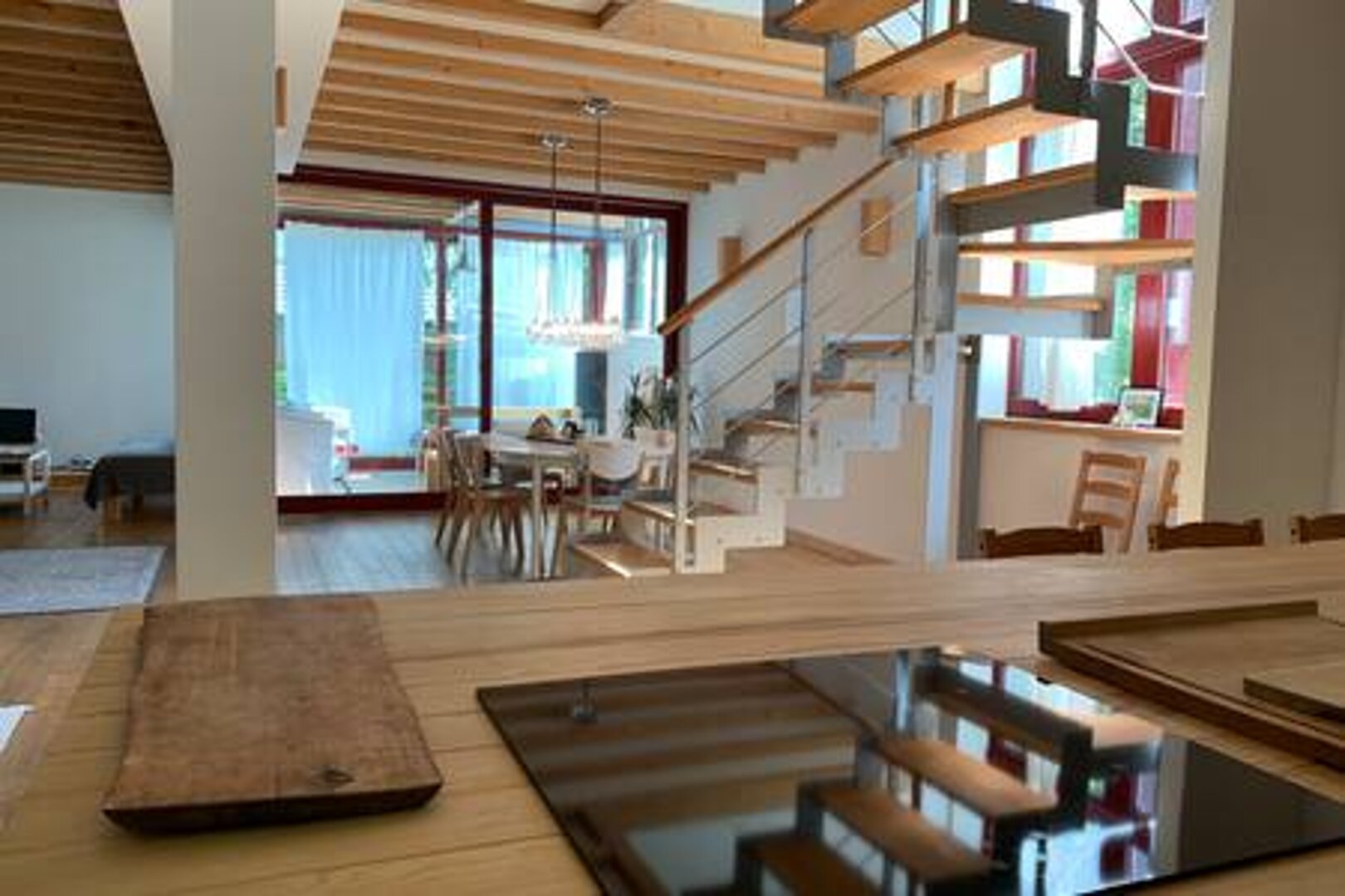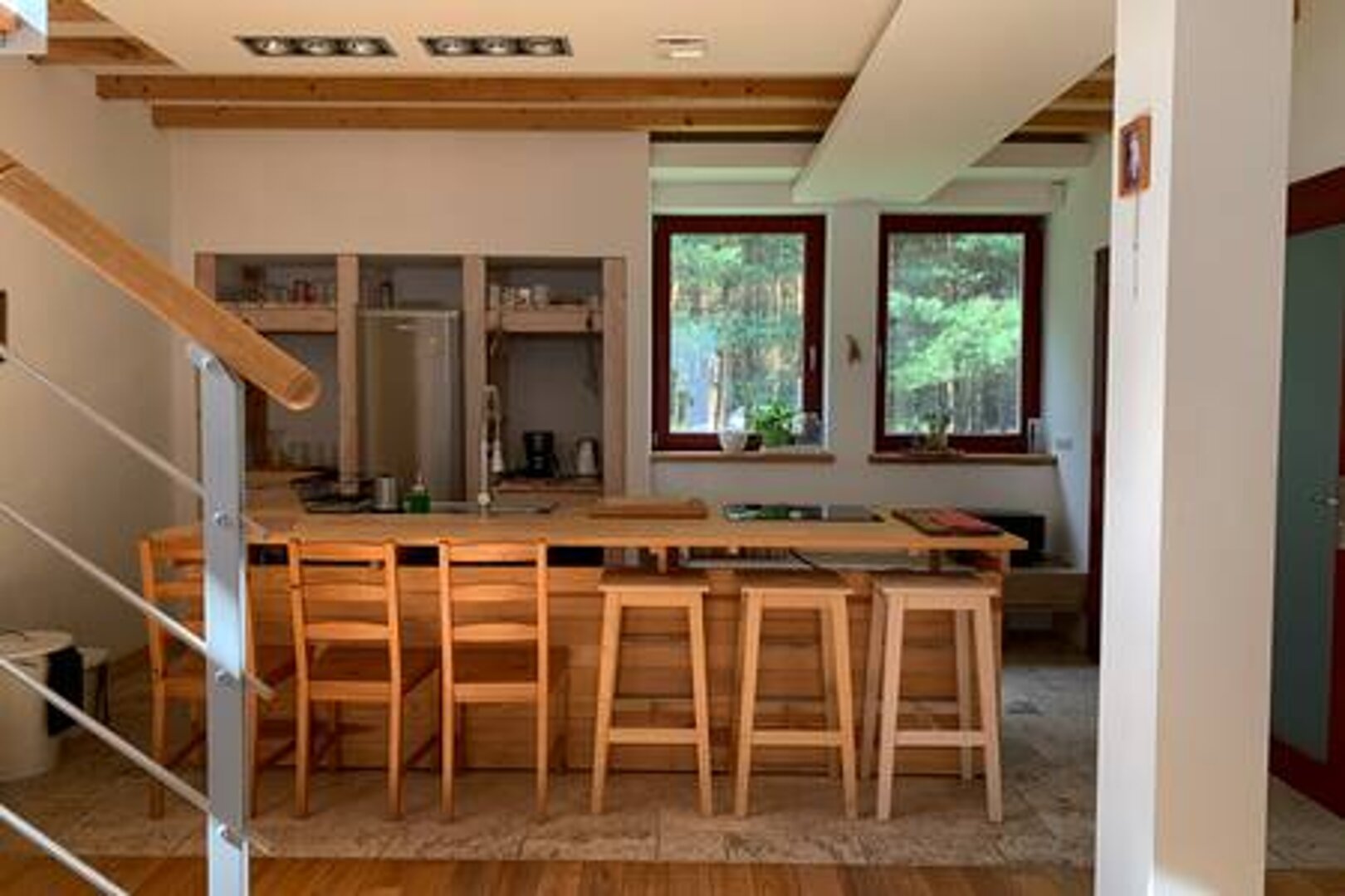 Miejsce do wypoczynku i do pracy.Jest biurko i dobry internet. Jest to nowy całoroczny parterowy bardzo ciepły domek o powierzchni 45 m2 z kominkiem i pełnym wyposażeniem,duża lodówka,pełna płyta indukcyjna,piekarnik,zmywarka oraz nowoczesna pralka.Wygod
