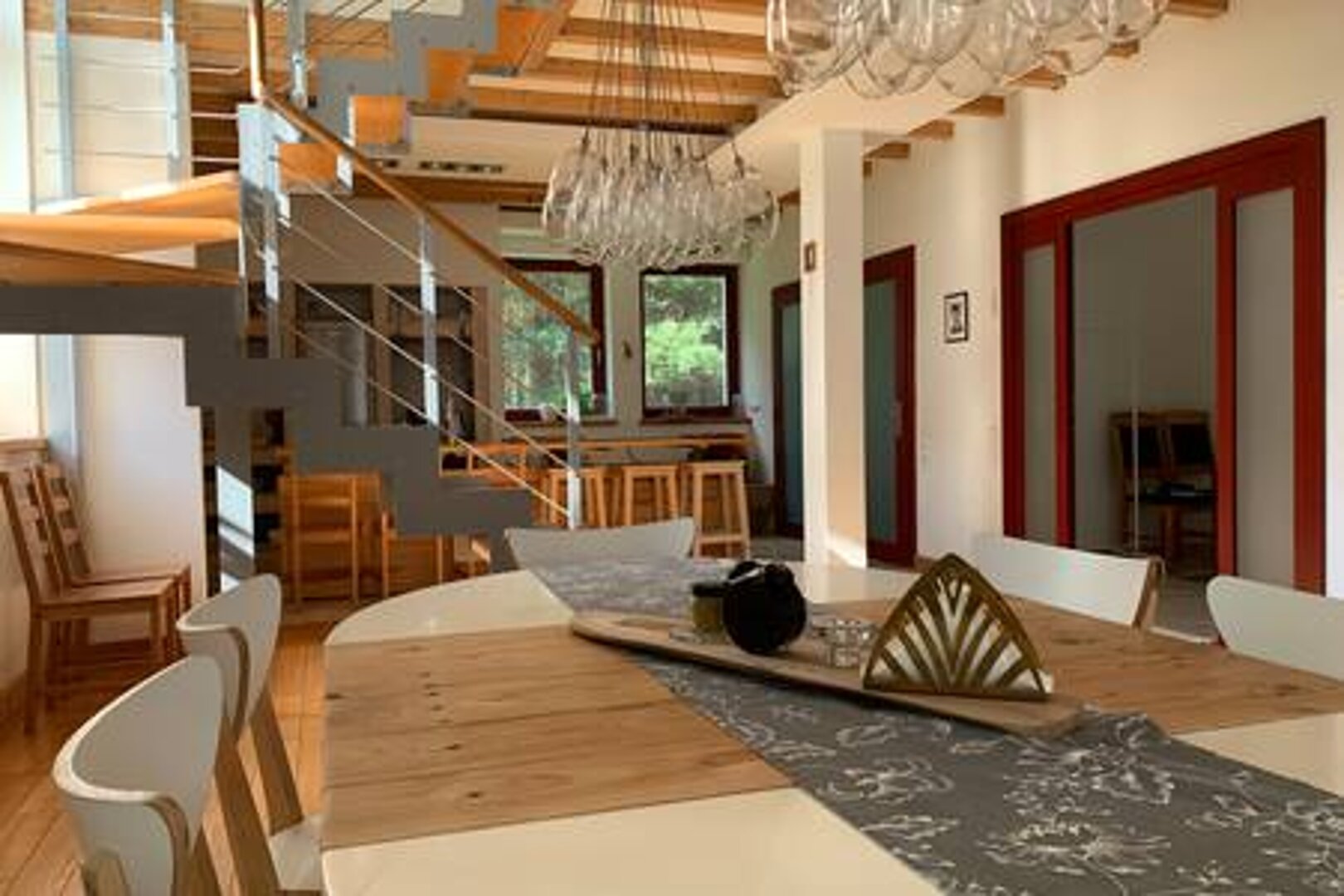 Zaplanuj swój czas w sercu baśniowych mazurskich lasów. Odetchnij najczystszym powietrzem Zielonych Płuc Polski, zanurz stopy w przejrzystej głębi rzeki Pasłęki, a nocami podziwiaj miliony gwiazd w ciszy i spokoju sielskiego odludzia. Zamieszkaj na skraju lasu, w jednym z moich dwóch nowoczesnych domów: Czerwonym, którego sielski klimat pozwoli zapomnieć o troskach codzienności, Zielonym, gdzie industrialne wnętrza zaskoczą niejednego miłośnika nowoczesnego dizajnu. W obu domach przyzwoity dostęp do internetu mobilnego - antena zewnętrzna + biurko do pracy. W obu domach zachwycą Was niebanalne wnętrza, oszklone pokoje, z których rozpościera się widok na okoliczne lasy, ogrody zimowe, gdzie można odpocząć przy nastrojowym trzasku ognia. Miłośnikom jogi przygotowałem przestrzeń idealną do medytacji, a dla dzieci kącik z zabawkami. Przy domu czerwonym możecie skorzystać z gorących kąpieli w ekologicznej balii. Domy usytuowane są na rozległych - 15 arowych działkach zapewniających poczucie swobody. Możecie się byczyć w hamakach i korzystać z tarasu - jeśli szum drzew i śpiew ptaków ma stanowić tło, a nie główny element rozrywki, w domach znajdziecie zbiór książek kucharskich, poezji i podręczników akademickich moich dzieci :-) Dobrze znam okolicę i chętnie posłużę radą, gdzie i jak najlepiej skorzystać z lokalnych atrakcji turystycznych i kulinarnych. Miejscowość Pelnik to cicha i spokojna wieś nad jeziorem Isąg. W odległości krótkiego spaceru (900 m) znajduje się strzeżona plaża z infrastrukturą (ławki, miejsce na ognisko, plac zabaw dla dzieci). Jest to ciche miejsce z pięknym widokiem na całe jezioro. W pobliżu wypływa rzeka Pasłęka, której bieg objęty jest rezerwatem przyrody "Ostoja bobrów na rzece Pasłęce". Poza bobrami można tu spotkać wydry, norki i żurawie, w okolicznych lasach zaś sarny, jelenie i dziki. Gratką dla miłośników zwierząt będą również odwiedziny w zaprzyjaźnionej stadninie koni. Fascynaci sportów wodnych również nie będą się tu nudzić, w okolicznych gospodarstwach można wynająć łódki i kajaki. Z przyjemnością pomogę zorganizować wypad na spływ kajakowy na rzece Krutyni, jednej z najczystszych i najpiękniejszych rzek w Polsce. Chętnie podpowiem, dokąd udać się na spacer, aby móc podziwiać urokliwą aleję lipową, gdzie spróbować pysznych lodów, warmińskich pierogów, czy miejscowego cydru. W niewielkiej odległości (24 km) znajduje się Olsztyn, gdzie również czeka na Was wiele atrakcji, o których chętnie opowiem. W sezonie okolicę najprzyjemniej zwiedza się na jednośladem, gmina wytyczyła kilkadziesiąt kilomterów oznakowanych szlaków. Rowery można wypożyczyć w pobliskiej miejscowości. Na wsi kochamy wszystkie zwierzątka: po sąsiedzku żyjemy z kózkami, konikami, pieskami i kotkami, ale nie wpuszczam ich do domów. Palimy albo ognisko, albo w kominku. Entuzjastów wyrobów tytoniowych prosimy o refleksję nad swoim zdrowiem i wstrzemięźliwość, bądź oddawanie się swoim przyzwyczajeniom poza domem.